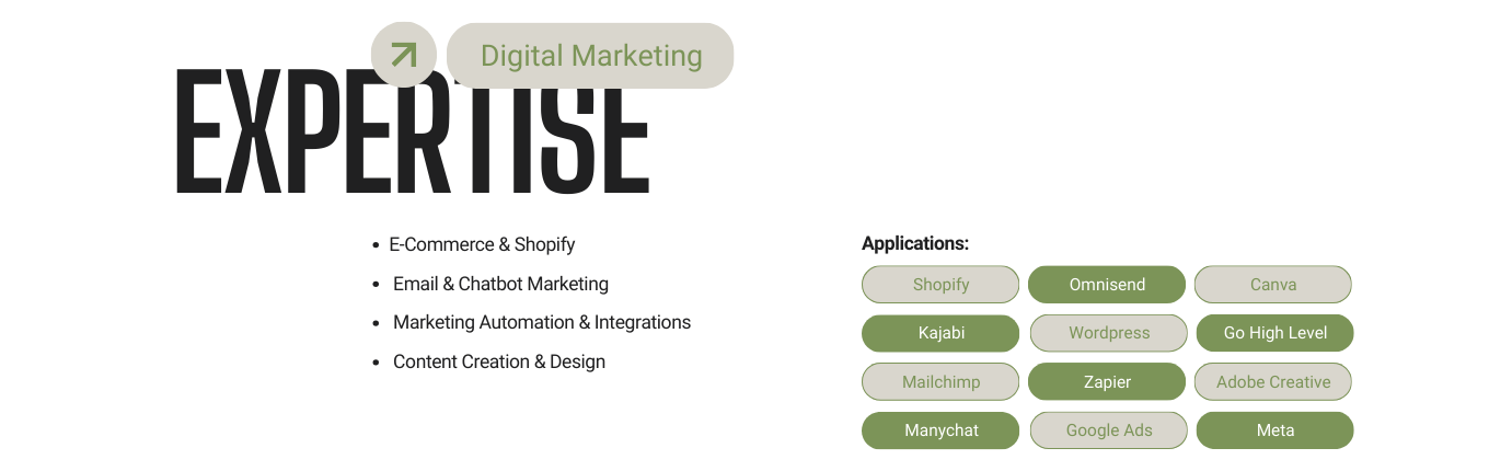 a Digital Marketing Specialist dedicated to helping brands—from startups to established companies—build efficient, user-friendly online presences that drive results. I work extensively with Shopify, WordPress, and Kajabi to develop websites and e-commerce stores that look professional and convert effectively.